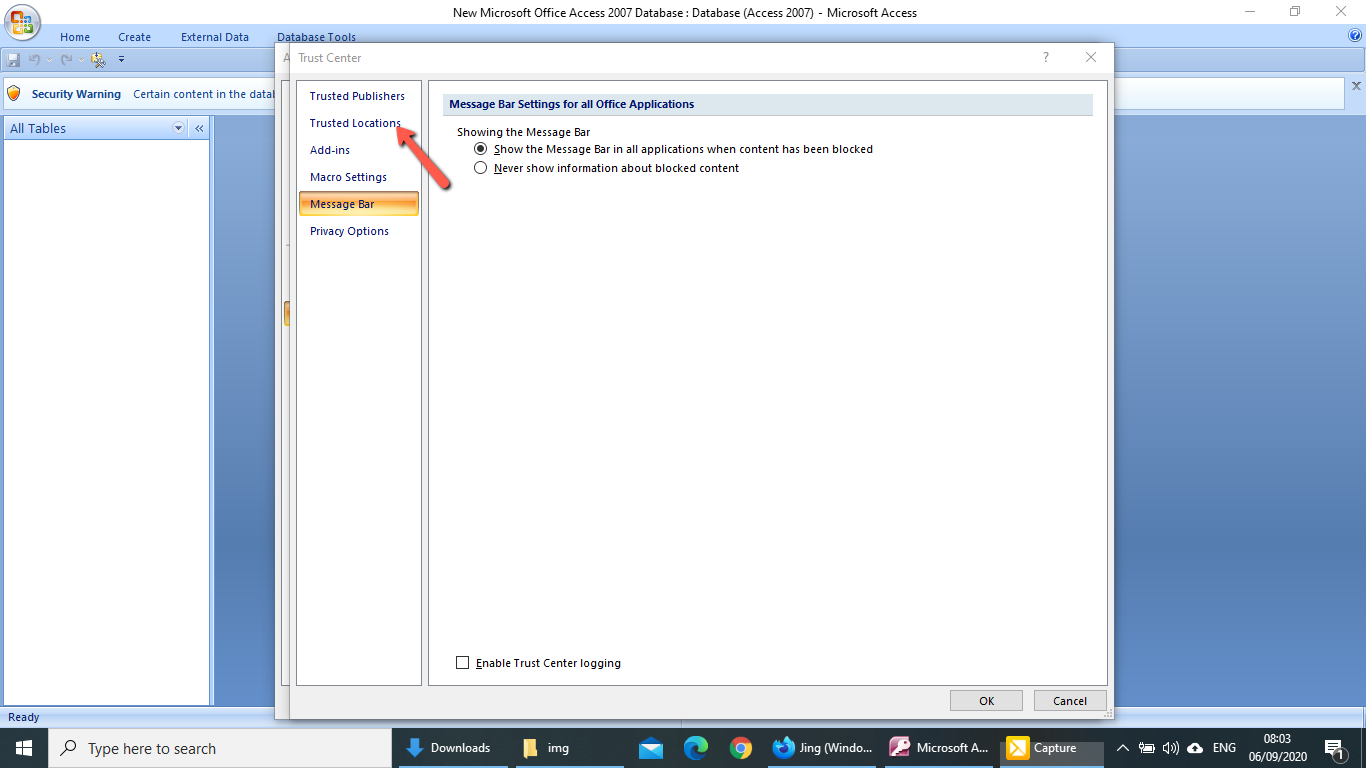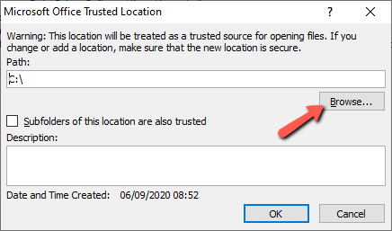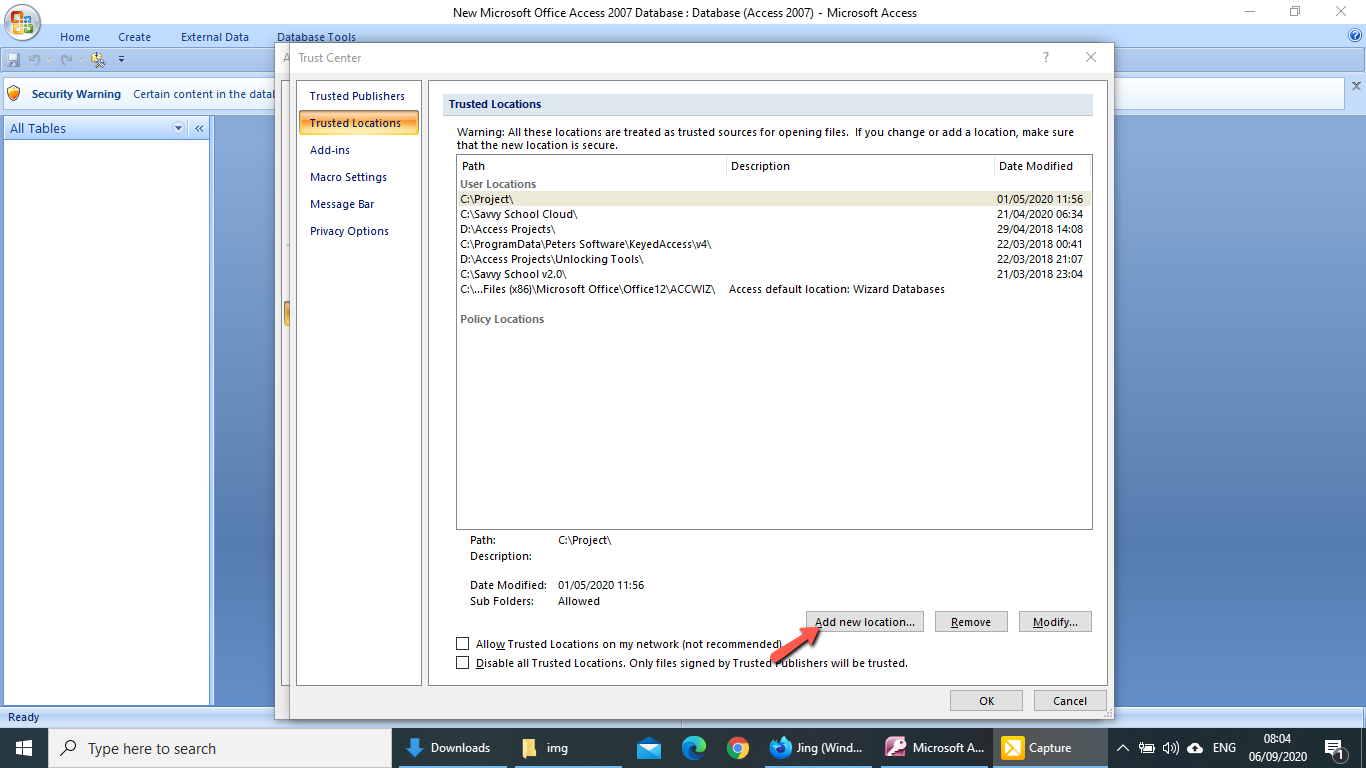 - On the left menu, click "Trusted Location" to open another window shown below.