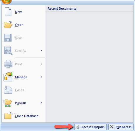 For Office 2010 and later, select "File" on the main menu and select "Options"