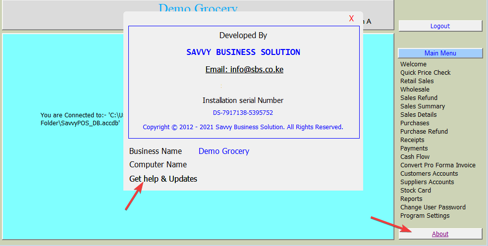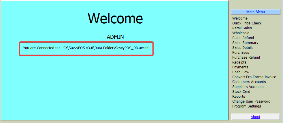 In our example, the “Data Folder” is inside “C:\SavvyPOS v3.0” folder.