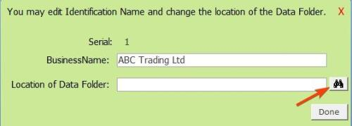 Although you are not creating a new business, you also need to tell your app where your data folder is located. Just click “Save” button to close and click “Refresh” button on the first window which is still open. Our example Business name we entered is: ABC Trading Ltd as shown below:
